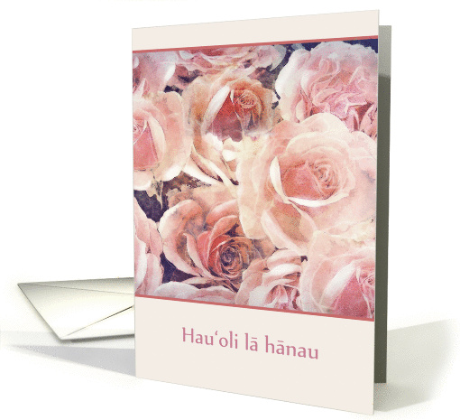 | Title: | Happy Birthday in Hawaiian, Hauʻoli lā hānau, pink and cream roses |