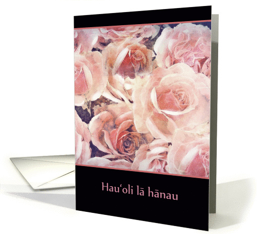| Title: | Happy Birthday in Hawaiian, Hauʻoli lā hānau, pink and cream roses |