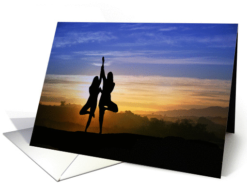 | Artist Notes: | Send greetings yoga style with this beautiful card featuring two yogis in tree pose. The inside is the classic yoga greeting Namaste. A great way to say hello! |