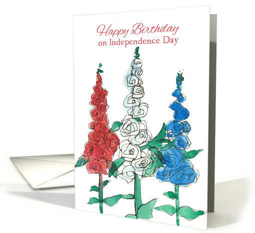 | Artist Notes: | Happy Birthday greetings on Independence Day decorated with festive flowers in the colors of the National 4th of July Holiday sketched with ink and watercolor. |