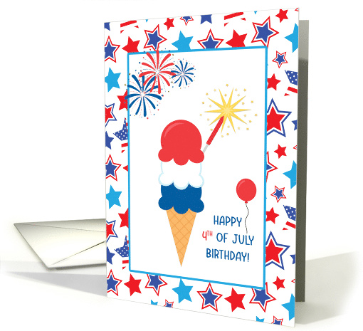 | Title: | July 4th Holiday Birthday with Ice Cream Cone & Stars |
