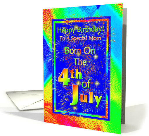 This cheerful card for your Mom’s birthday features a splash of brilliant colors and fireworks for a special Mom born on the 4th of July. If you would like to add additional text on the front of the card, send me a note through the custom design change link and I will be glad to personalize this card for Mom.