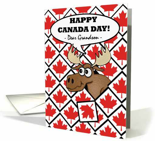 | Artist Notes: | Surprise your grandson with this humorous looking moose with big eyes, for Canada Day. Celebrate in style with this cartoon moose on a field of red maple leaves. Looks as though the moose is breaking through a paneled wall. |