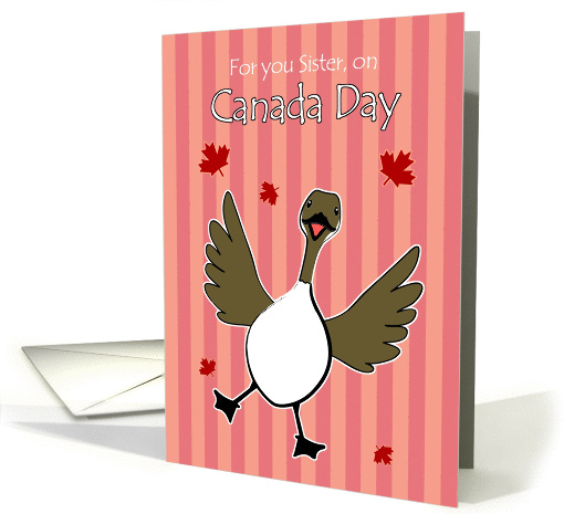| Title: | Canada Day, Sister, Happy Canadian Goose Maple Leaf Greeting Card |