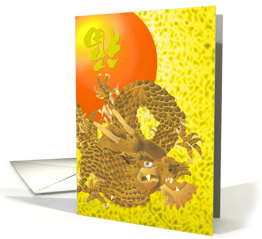 | Artist Notes: | Illustration of the mighty dragon descending from the heavens through swirling yellow clouds and a setting sun. The Chinese character for luck is displayed in a stylized form and written upside down to symbolize luck arriving. |