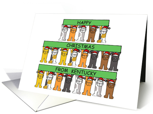 | Title: | Happy Christmas from Kentucky Cartoon Cats Wearing Santa Hats |