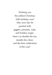 Turning 30 on Christmas is the perfect way to step into a brand-new decade! This cheerful card shows Santa holding a festive cake with “30,” symbolizing fresh beginnings, holiday happiness, and milestone joy. A wonderful keepsake for celebrating life, laughter, and the magic of Christmas all in one.