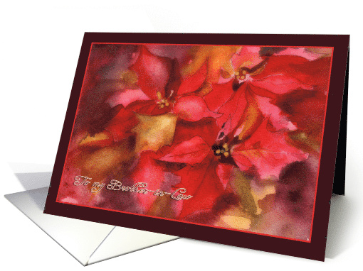 This elegant Christmas card features a vibrant, original watercolor painting of red and green poinsettias framed by a black background. A stylish way to wish your brother-in-law a merry Christmas. You can edit text inside card.