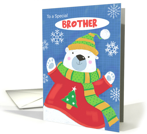 To a Special Brother Christmas Holiday card. Illustrated with the cutest Bear dressed in a snuggly sweater and hat and scarf. ©DaleSimpson