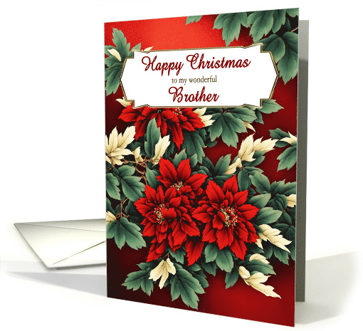 A lovely Christmas card for your brother. Celebrate the season with elegance and grace. This Christmas card features a stunning arrangement of vibrant red poinsettias, symbolizing joy and prosperity. Let these beautiful flowers convey your heartfelt wishes for a joyful and blessed holiday season to your loved ones.