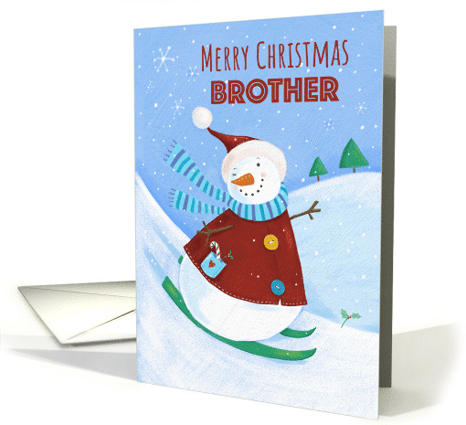Wish your Brother a Merry Christmas with this jolly fun snowman Skiing illustrated Holiday card design! ©DaleSimpson