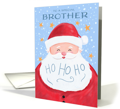 To a Special Brother, Christmas Jolly Santa Face card with the words Ho Ho Ho written on his white beard. ©DaleSimpson
