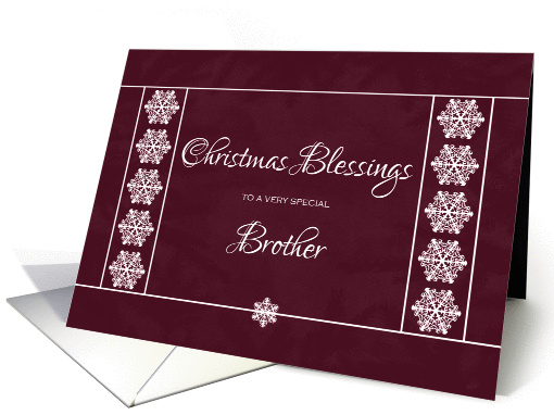 Here's a great way to send Christmas Blessings with this elegant burgundy and white snowflake card. Design also available in green and red. Original Design by Sue Nollmeyer©2013. 8513