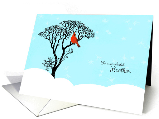 Send a sweet Christmas greeting featuring a red cardinal in a tree with a soft blue, snowy background. Original Design by Sue Nollmeyer©2013. 11213