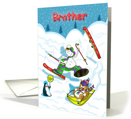 | Title: | Funny skiing Brother Christmas card, Fat Cat and Duncan |