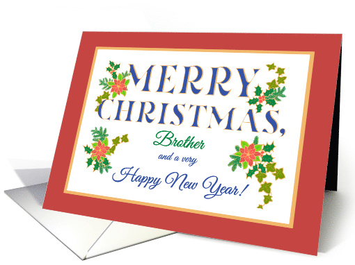 For Brother at Christmas with Poinsettia Holly Ivy Fir Sprigs