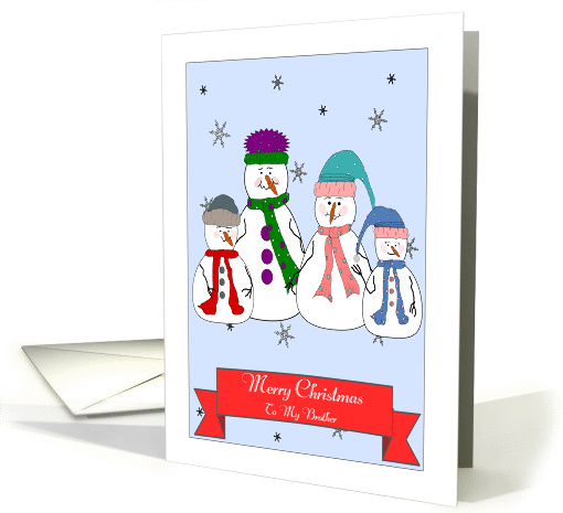 Merry Christmas Brother, Snowman Family, Whimsical Primitive Art