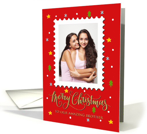 | Title: | OUR Brother Custom Photo Postage Stamp with Faux Gold Merry Christmas |