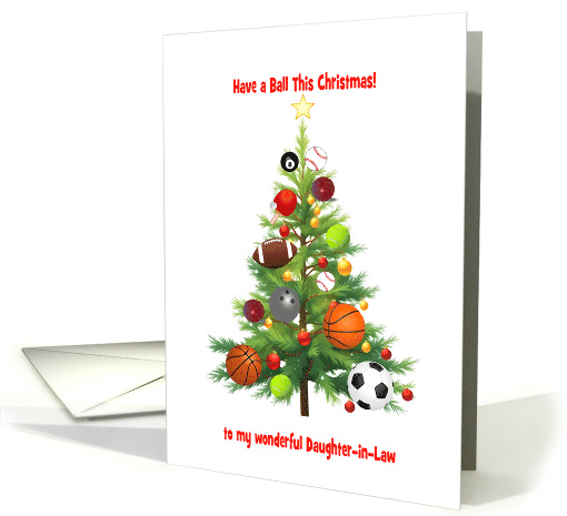 | Artist Notes: | A perfect Christmas card for a daughter -in-law who loves sport. Send season’s greetings with a sporty twist! This Christmas card showcases a fun Christmas tree decorated with various sports balls—ideal for anyone who lives and breathes the game. Great for teams, gyms, or sporty families. |