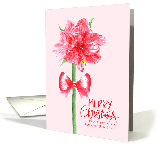 | Title: | Merry Christmas Daughter in Law with Watercolor Red Amaryllis and Bow |