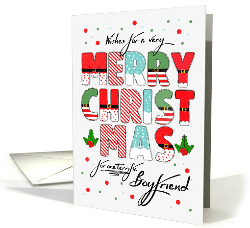 | Artist Notes: | Festive Merry Christmas lettering with each letter decorated with seasonal fun and colors creating a great greeting for your boyfriend. |