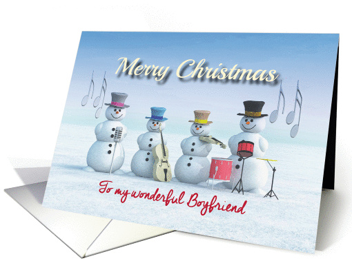 | Artist Notes: | Surprise your Boyfriend with snowmen playing music for Christmas. This card with snowmen is great for a music lover. There is inside a text which you can customize to something very personal. |