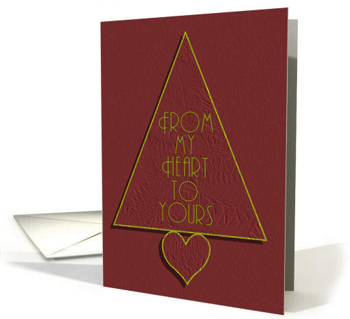 | Artist Notes: | Christmas card in maroon with gold lettering "From my heart to yours". Christmas tree design with a heart trunk. |