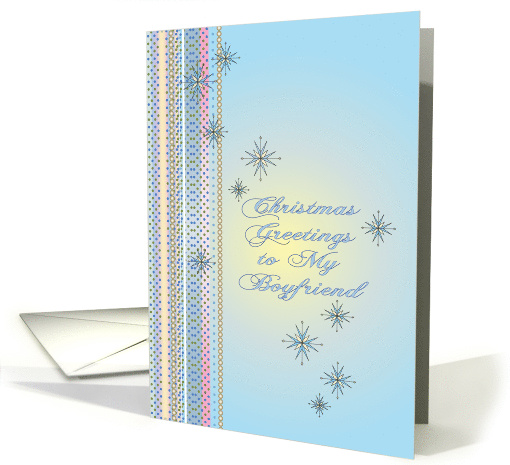 | Artist Notes: | This is a Christmas card for a boyfriend featuring a light blue background, pastel vertical stripes, snowflakes, and a light blue headline. The inside message may be changed if you wish. ©Gail Pepin |