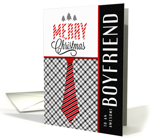 | Artist Notes: | Sporty theme in red, black and white offers a masculine feel to this holiday greeting for your boyfriend and features red holiday ornaments and black plaid pattern. |
