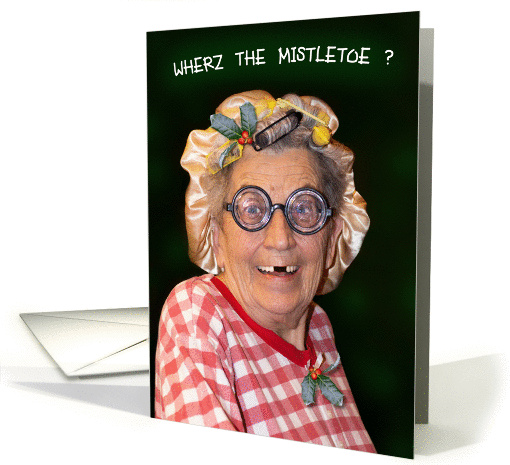 | Title: | Crazy, toothless redneck woman in curlers wants her boyfreind to give her a big Christmas mistletoe kiss. |