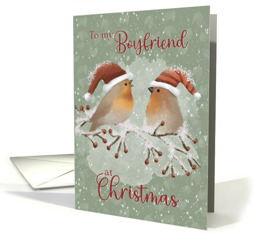| Title: | To Boyfriend at Christmas Birds with Santa Hats on Snowy Limb |