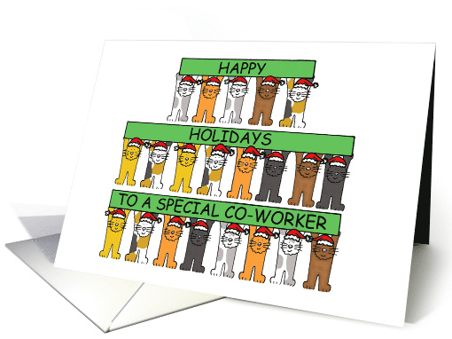 Happy Holidays to a Special Co-worker Cartoon Cats in Santa Hats