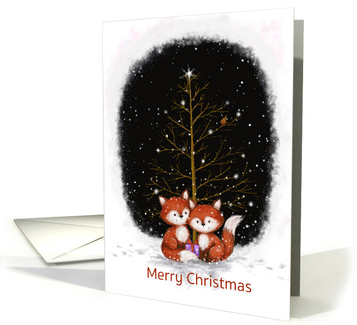 A Fox Couple Sitting with Present in Snow Merry Christmas for Both of You