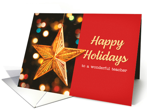 Some teachers really stand out from the crowd! If you are lucky enough to have one of those star teachers, send this pretty gold star ornament on a Christmas tree to wish them Happy Holidays!