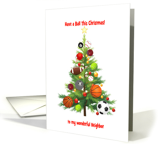 A perfect Christmas card for a neighbor who loves sport. Send season’s greetings with a sporty twist! This Christmas card showcases a fun Christmas tree decorated with various sports balls—ideal for anyone who lives and breathes the game. Great for teams, gyms, or sporty families.