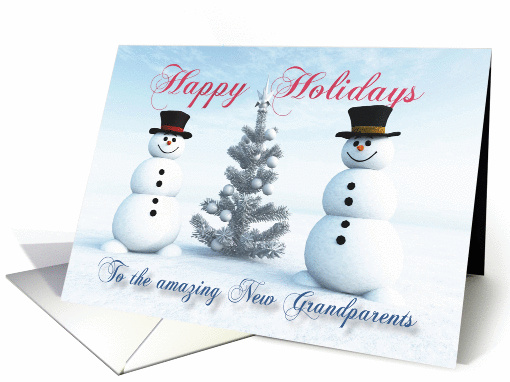 Two snowmen with Christmas tree for New Grandparents. There is inside a text which you can customize to something very personal.