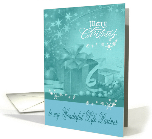 | Title: | Christmas to Life Partner, Presents, Bows, Ornaments with snowflakes |
