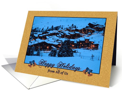 | Title: | Happy Holidays, from All of Us, ski resort at night |