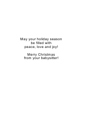 Christmas items such as holly, snowflakes, presents, mistletoe, pine trees, bows and hearts decorated in a bauble ornament shape with a dove in the middle. The words 'Merry Christmas' is created with Ness Nordberg's unique hand lettering. A lovely Christmas card to send from you the babysitter.