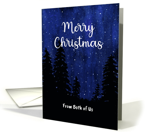 | Artist Notes: | Send this lovely Merry Christmas card created from a painting with a special someone from a couple. The design captures the peacefulness of a tranquil winter night with a deep navy blue sky full of stars and the silhouette of evergreen trees. |