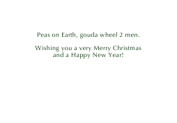 This funny holiday / Christmas greeting "From our Home to Yours", is a puzzle for your friends and family to decipher. (Peas on Earth, Gouda Wheel 2 Men.) If the recipient is a puzzle-lover, a nerd or a brainiac, they will get a kick out of this funny and unique Christmas card. If YOU are the nerd, this card will speak volumes to your friends at Christmastime.