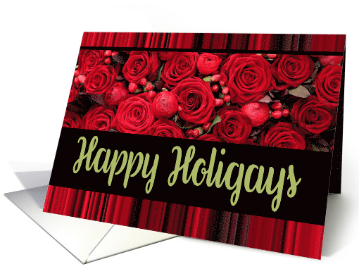 Happy Holigays Season's Greetings Roses and Winter Berries