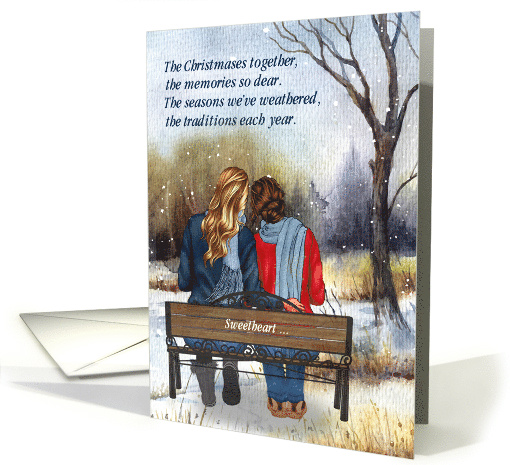 | Artist Notes: | Such a romantic scene, this lesbian couple in an embrace while sitting overlooking a country meadow in the winter and a Christmas message for your life partner. |