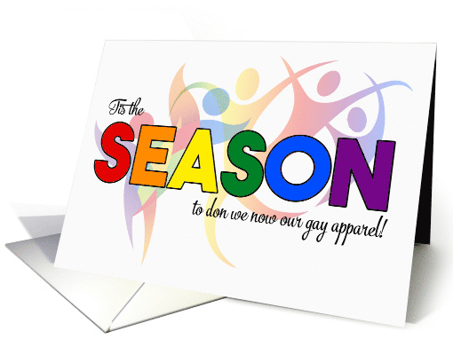 Tis the season to don we now our gay apparel! Fun LGBT gay flag colors, rainbow holiday season greeting for the LGBT community.