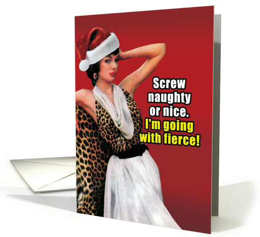 Fierce Lady in Leopard Holiday Christmas Joke Paper Card