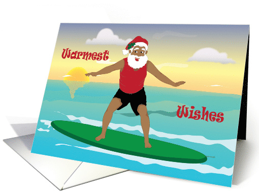 Christmas-Warmest wishes black Santa surfing Card