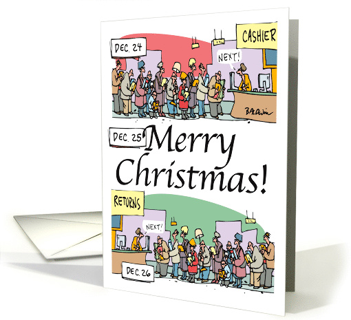 After the mad rush to get everyone on our list the perfect gift and spend most of Christmas eve in long register lineups we have Christmas Day and then it's back to the malls to spend all of Boxing Day in long register lineups to make the returns! Exhausting, yes! But this Christmas greeting is a way to laugh at the madness and hopefully share our sense of humor to survive it all! Let your love ones know you get it and they are not alone! It's a Christmas Miracle any of us survive it!