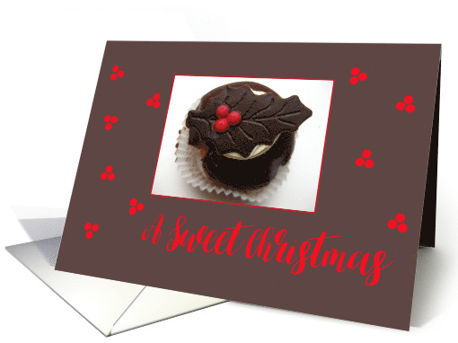 Sweet Christmas Chocolate Cupcake A Christmas cake with a chocolate holly leaf and red berries. Wish all your friends and family a very sweet Christmas and send them some chocolate. Created by Studio Porto Sabbia and available for many other family members and in some non-english languages.