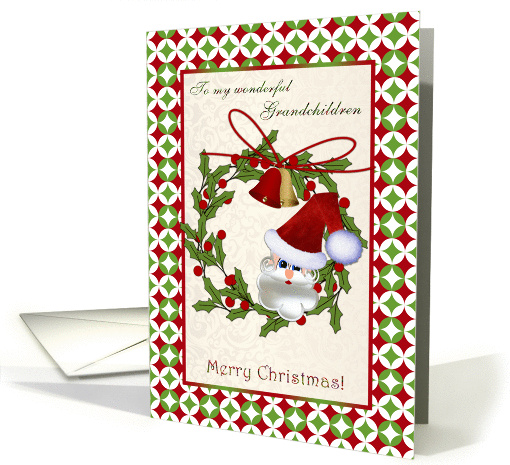 | Title: | Christmas card for Grandchildren - Santa, bells and holly wreath |