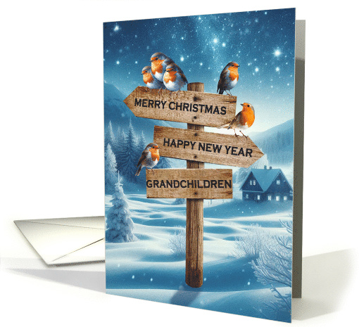 | Title: | Grandchildren Christmas Robins on a Signpost |